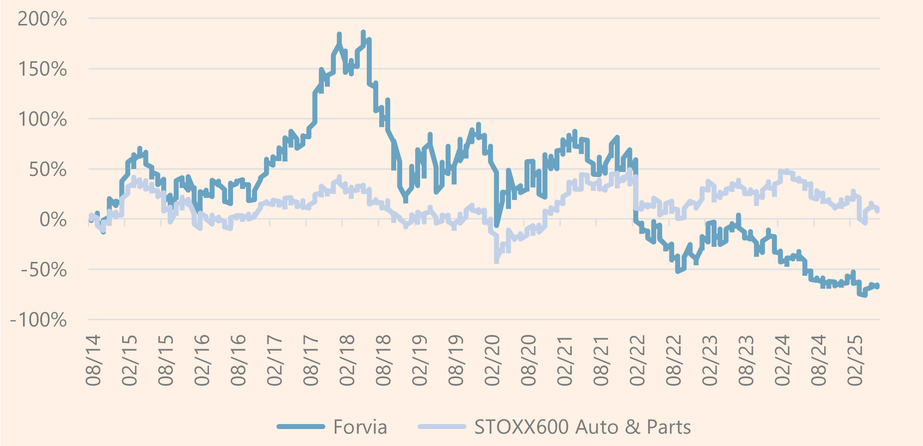 Forvia is one of the most penalized European automotive parts manufacturers, with a 64% decline over the last 3 years. Beyond the inherent cyclicality of the automotive sector, three reasons intensify the pessimism surrounding Forvia.