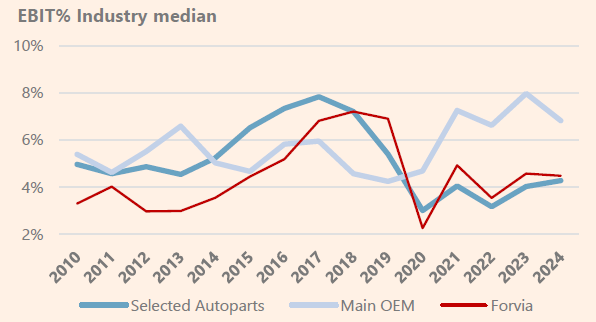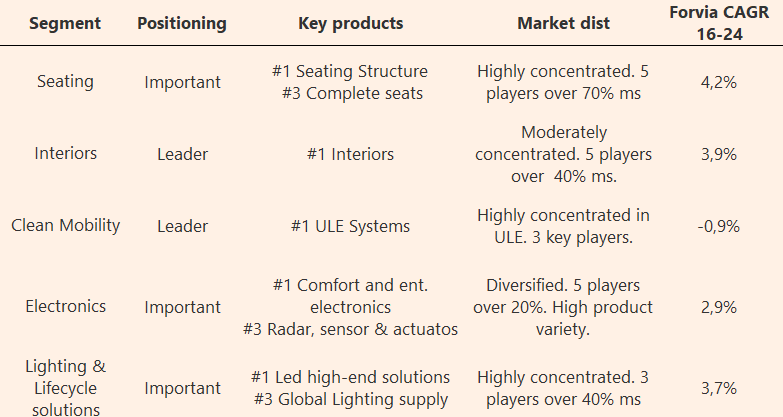 Forvia is a global leader or key player in all its segments, within an industry that has been consolidating in recent years. We extensively discussed the capital cycle in autoparts in the Dowlais thesis. I've provided a link if you wish to gain further insight into this matter: