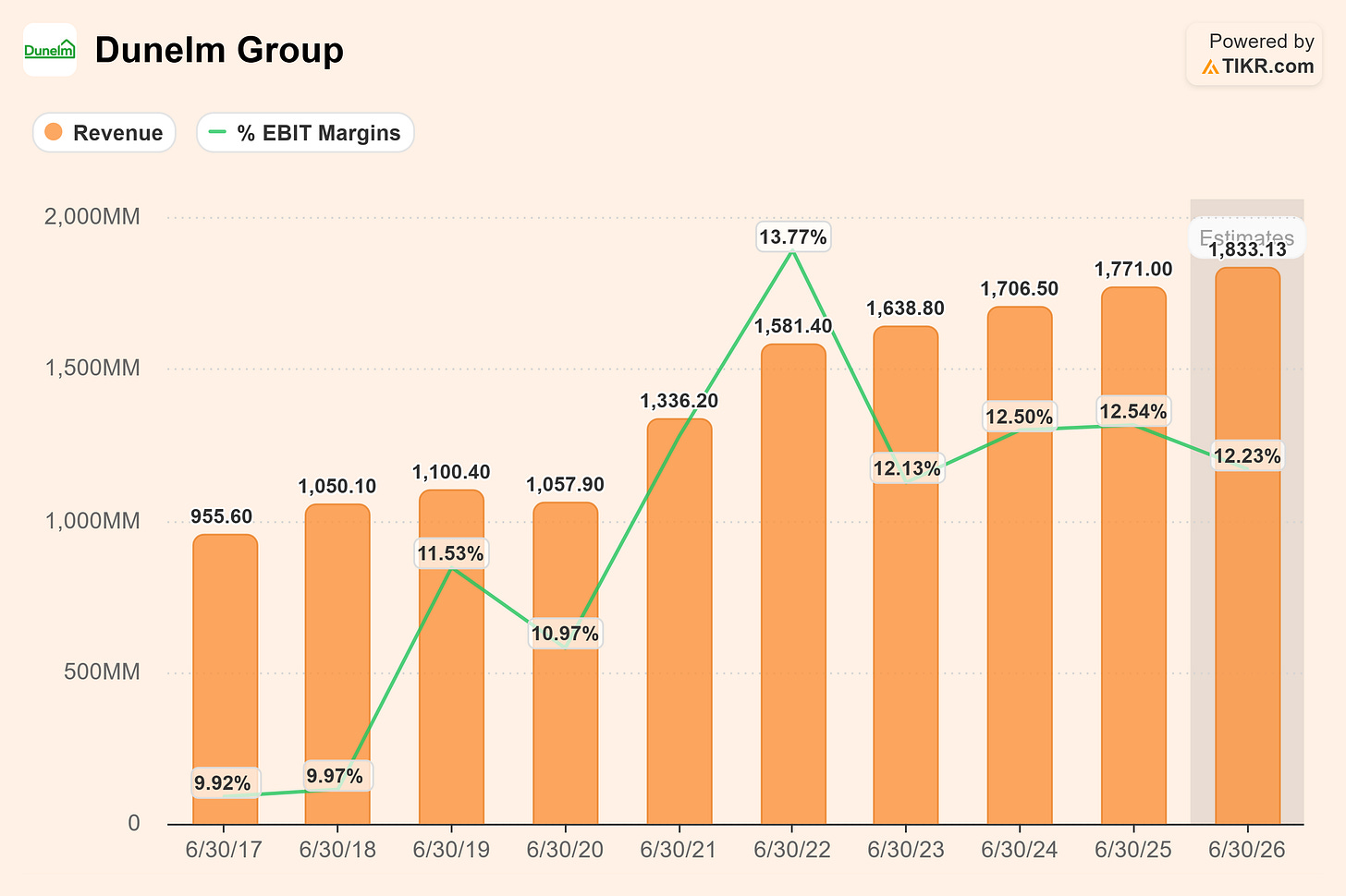 Dunelm Group (XLON: DNLM) — Specialty Retail | GBR A founder-led specialty retailer with a scalable business model, strong insider ownership, and consistent capital returns. In a sector often dismissed as structurally challenged. Dunelm stands out for the right reasons. I would not normally go after a business just because it is scalable, but it appears undervalued on first pass and carries contained debt.