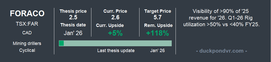 Beyond the upcoming Dunelm thesis, Foraco is a compelling reason to subscribe. It is one of my highest-conviction positions: the cycle is favorable, the thesis is resilient to the Iran conflict, the 2026 backlog guarantees strong visibility, and the CEO just bought shares. Full disclosure: it is my 4th largest position at 6% and I am currently adding.