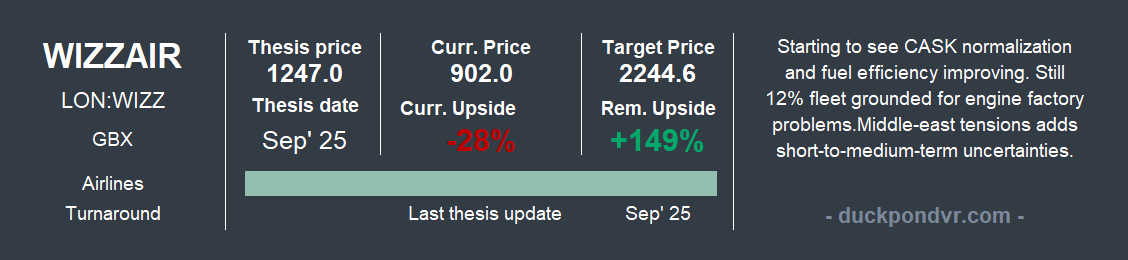 And here we are. With the war ongoing, a large portion of the gains reported in some theses has vanished. The 14% drop in Forvia and the 18% slide in Wizz Air are particularly painful. Let's briefly review each of these investment cases.