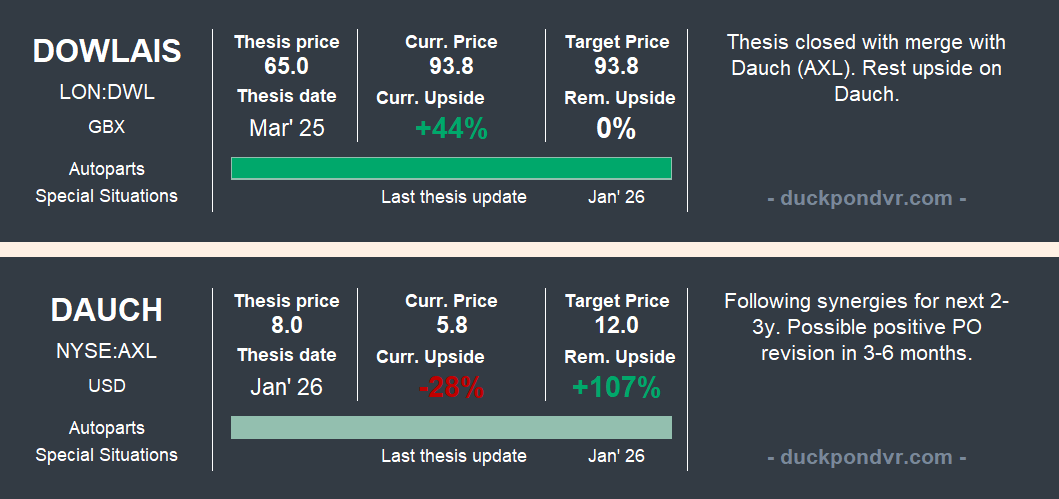 I saved the most painful case for last: It is true that Dauch hasn’t dropped more than its peers since the start of the conflict (11%), but it was already down 30% since it began trading alongside Dowlais.