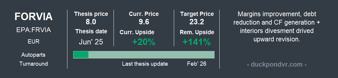 The conflict has wiped out 14% of its value since it began. When a confidence crisis hits the markets, everything drops, but the most leveraged companies suffer the most—and that’s exactly where Forvia stands. It is one of the hardest-hit auto parts stocks these days. I see an opportunity here, as I noted in my recent thesis revision.