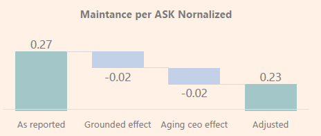 For FY2025, the company provides the impact on maintenance unit cost, broken down by the effect of the grounded fleet and the excess cost of aircraft with extended leases. There is an additional, unexplained effect, which they quantify at €0.01 cents, that has not been taken into account in this analysis.
