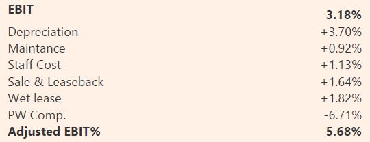 The company has utilized "wet leases" (leasing an aircraft complete with crew, maintenance, and insurance from a third party) to bolster its capacity during key periods of the year. This arrangement reduces margins and, at times, these flights are even operated at a loss to maintain customer service. Although this is a common practice for airlines, the impact in FY2025 was substantial at €113 million, compared to €17 million in FY2024 and €3 million in FY2023. Normalizing this expense has an impact of €0.08 cents per ASK and translates to a +182 basis point (bps) increase in the EBIT margin.